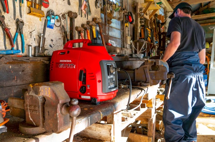 The EU10i is ideal for a wide variety of domestic, recreational and professional applications. It’s perfect for camping or on the worksite thanks to Honda's advanced four-stroke GXH50 engine for a maximum power output of 1,000 watts AC, and rated output of 900 watts.